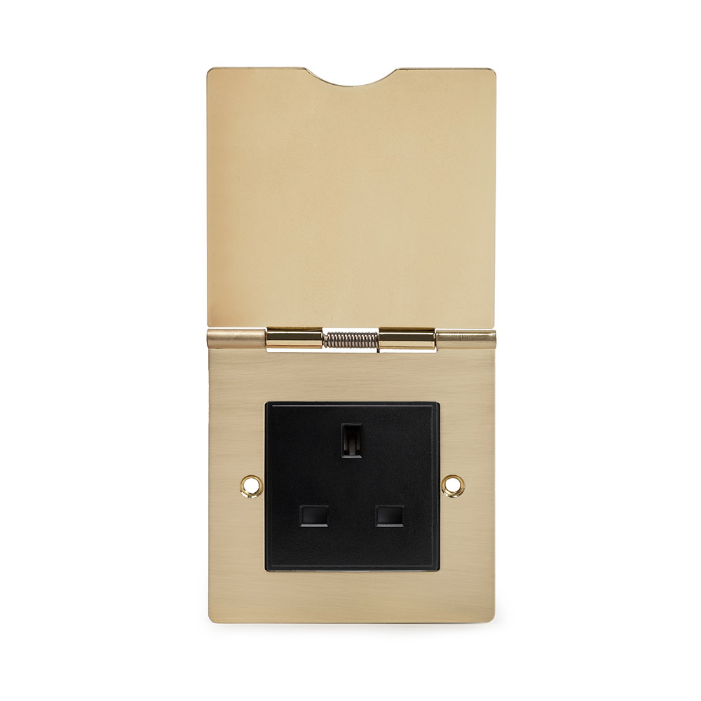 Soho Lighting Brushed Brass 13A Euromod Floor Outlet Socket 1 Gang Blk Ins - Size: 86mm x 86mm x 3.5mm