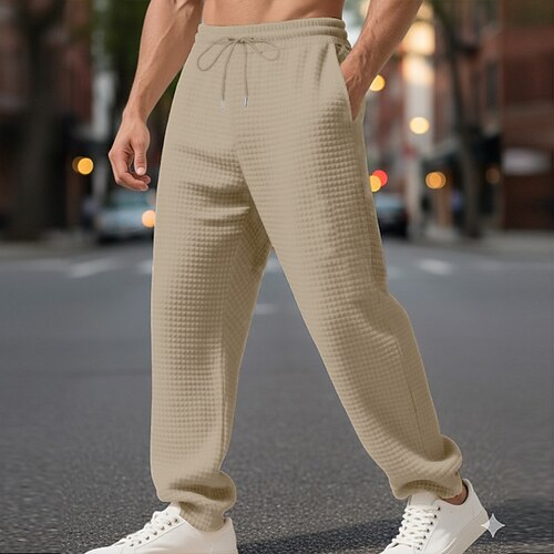 Per uomo Nido d'ape Pantaloni da tuta Pantaloni Pantaloni della tuta a gamba dritta Coulisse Tasca Frontale Semplice Comodità Lunghezza intera All'aperto Lavoro Quotidiano Moda Streetwear Nero Bianco
