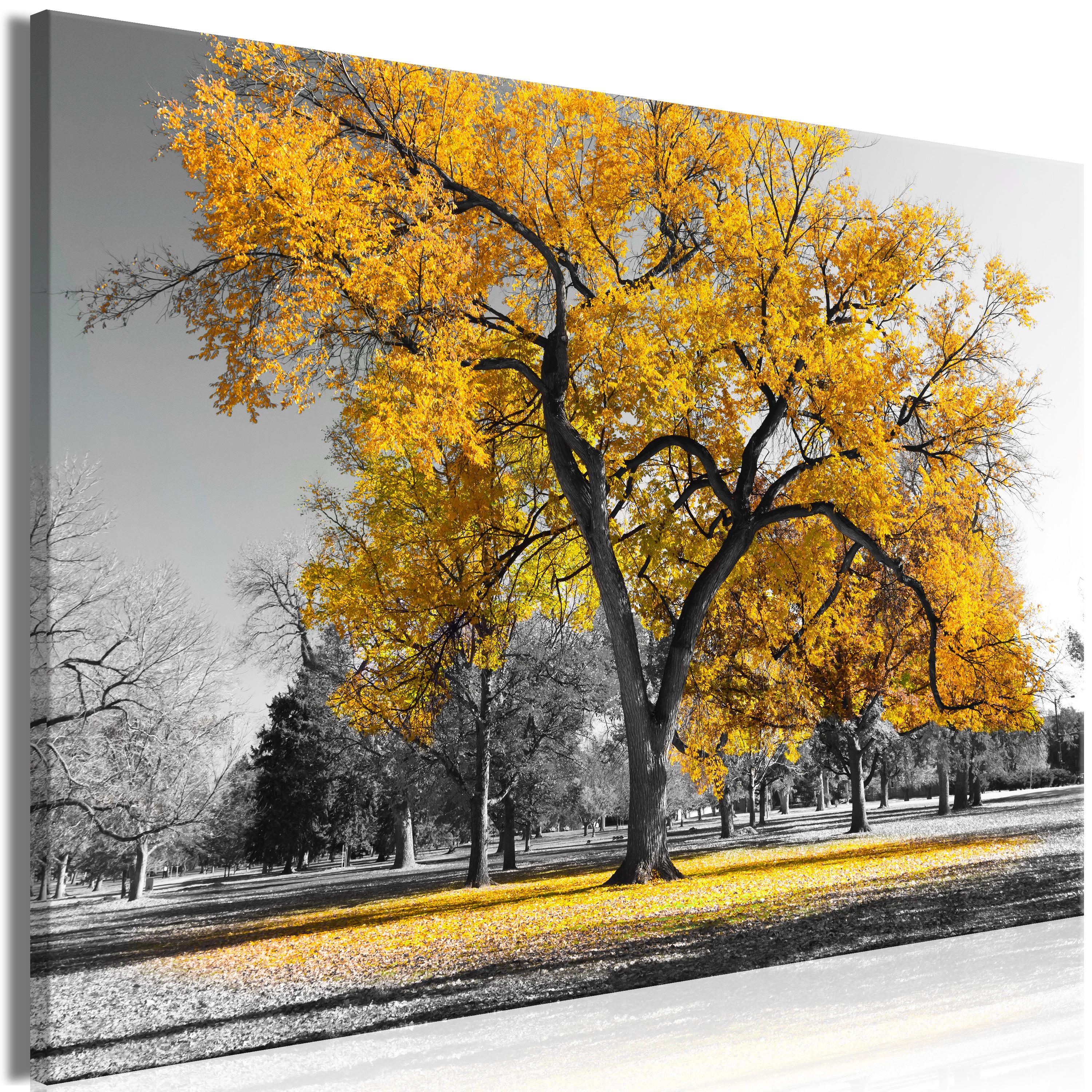 Billede - Autumn in the Park (1 Part) Wide Gold - 60 x 40 cm - På italiensk lærred