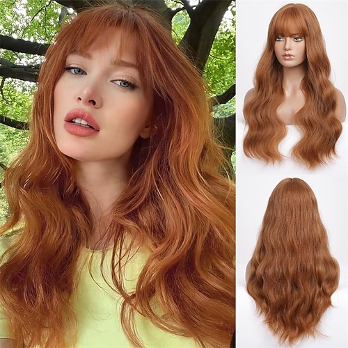 Parrucca castano ramato da 24 pollici per donna, parrucca ondulata lunga rosso rame, parrucca sintetica naturale color zenzero per cosplay, Halloween, uso quotidiano
