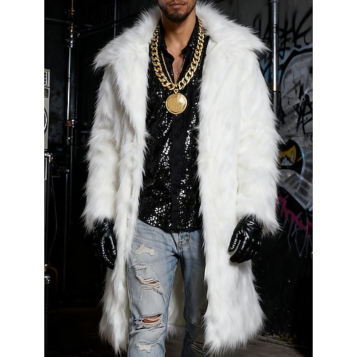 Per uomo Giacca Casual Cappotto in Pelliccia Sintetica Casuale Quotidiano Felpato Autunno Inverno Tinta unica Streetwear Quotidiano Collo ripiegato Lungo Argento Nero Bianco Marrone Grigio scuro