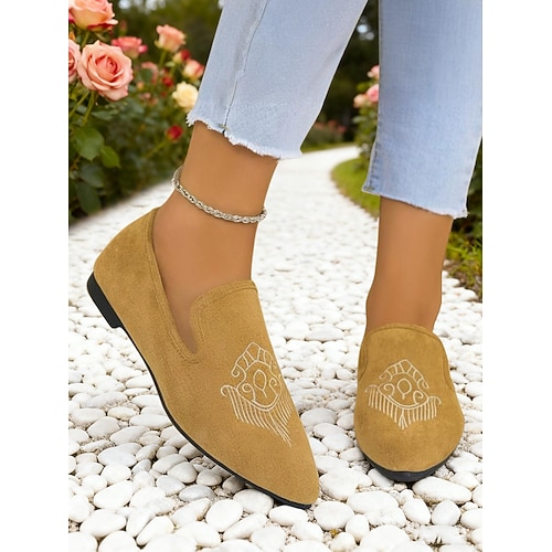 mocassini da donna in finta pelle scamosciata gialla - scarpe basse casual ricamate, comode e morbide per le commissioni quotidiane, gli appuntamenti per il brunch, le passeggiate in giardino e l'ufficio casual