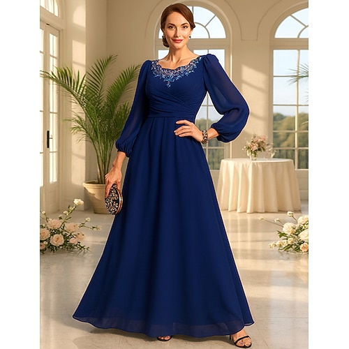 Abito da Prom A-Line di Lunghezza Piena Abito da Festa Abito da Sera Abito per Madre della Sposa Manica Lunga Collo a V Elegante Vintage Festa con Pizzo Perline Ricamo