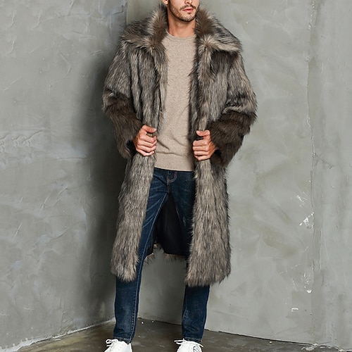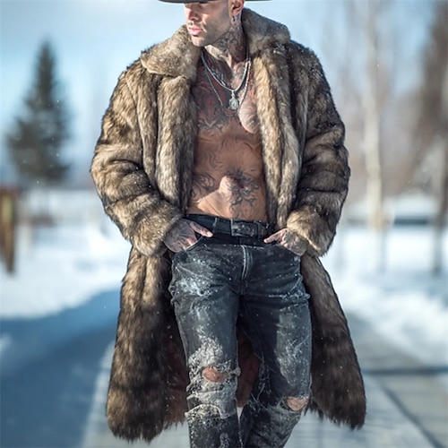 Per uomo Cappotto Invernale Cappotto in Pelliccia Sintetica Vacanza Quotidiano Calore Termico Pile Inverno Semplice Moda Streetwear Bavero Lungo Marrone Giacca