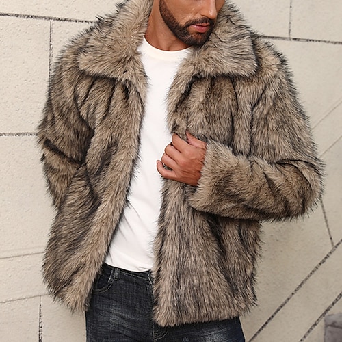 Per uomo Giacca Invernale Cappotto in Pelliccia Sintetica Vacanza Quotidiano Calore Termico Pile Autunno Inverno Semplice Moda Streetwear Bavero Regolare Pelliccia sintetica Bianco Marrone Grigio