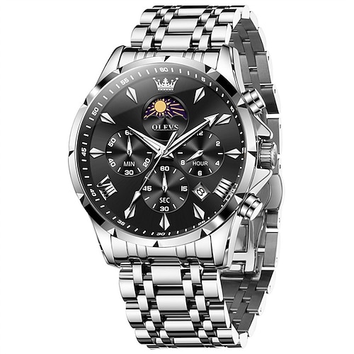 Die neue Olevs Herren-Businessuhr verfügt über eine leuchtende Mondphasenanzeige, einen Chronographen, ein multifunktionales Quarzwerk, ist lässig, modisch, wasserdicht und sportlich.