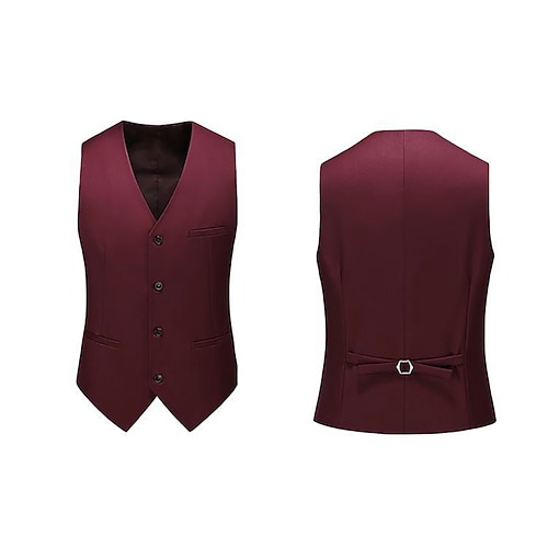 Herrenmode Weste Heimkehr Einfarbig Standard Passform V-Ausschnitt Einreiher mit vier Knöpfen Schwarz Burgunder Blau