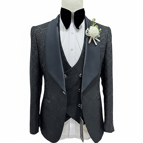Herren-Businessanzug für Winterhochzeiten und -feiern, vier Jahreszeiten, Schalkragen, schwarz, luxuriös, einfarbig, klassisch tailliert, 3-teilig, einreihig, mit einem Knopf