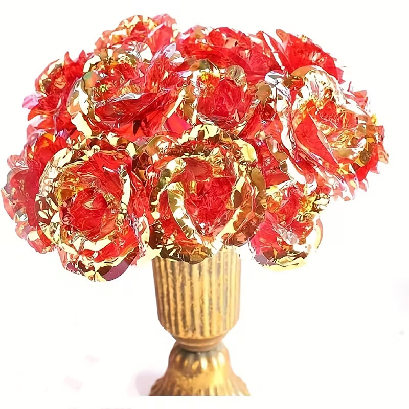 8 Pack Crystal Rainbow Roses, Eternal Multicolor Gold Plastic Roses, Shiny Faux Flowers for Valentine's Day, Mother's Day, Christmas, Anniversary, Birthday, Wedding, Thanksgiving, Home Decor and Gift