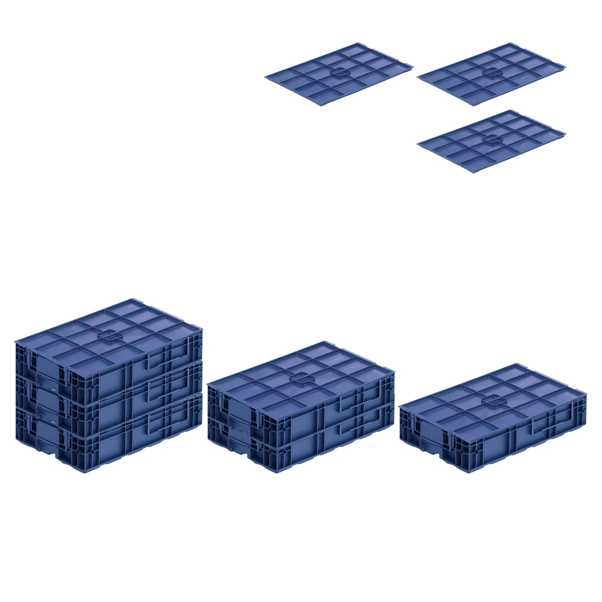 PROREGAL 6x VDA KLT Kleinladungsträger mit Verbundboden & Auflagedeckel | HxBxT 14,7x40x60cm | 22 Liter | KLT
