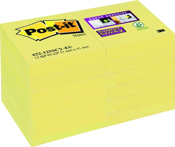 Post-it® Super Sticky Notes Canary Yellow, gul, 12 blokke, 47,6 mm x 47,6 mm
