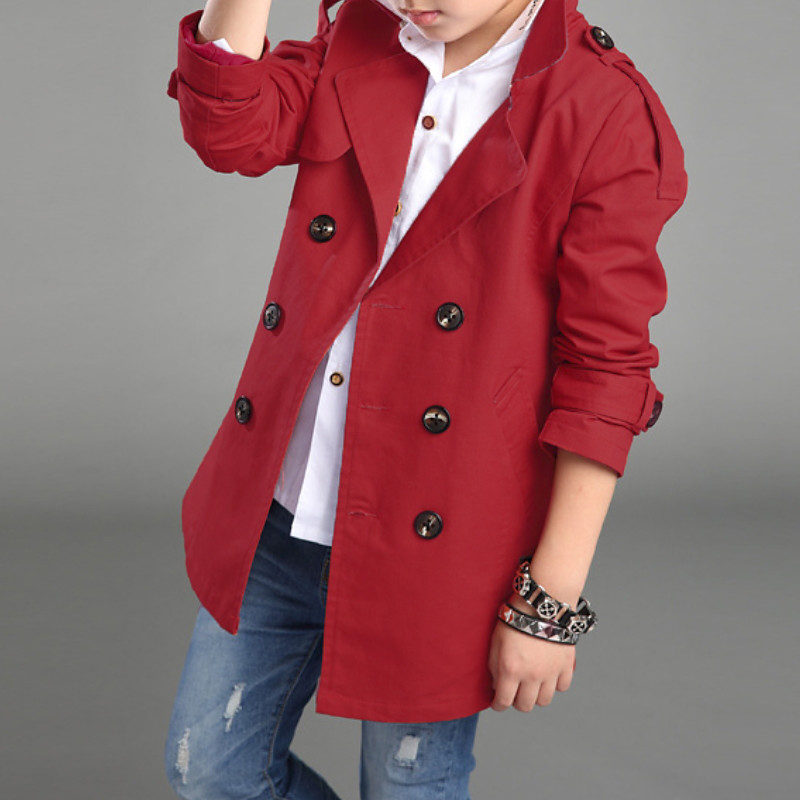 Kids Boys Trench Coat Outwear Long Sleeve Windproof Plain Winter Basic Daily Coat 4-13 Years Black Khaki Red