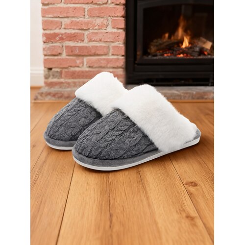 pantofole da casa da donna in maglia rosa con colletto in pelliccia sintetica: calde pantofole da infilare per la camera da letto, la spa e il relax in casa