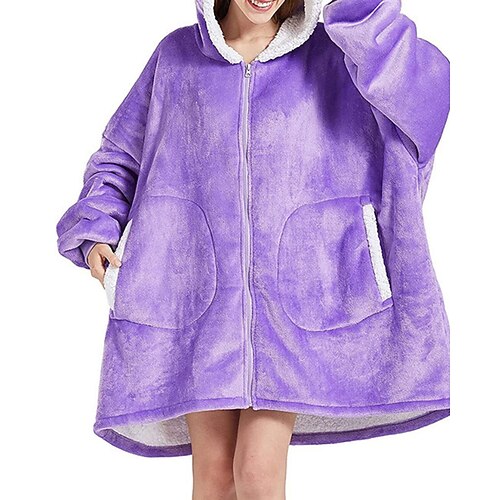 Per donna Pigiama Abbigliamento da Casa Camicia da Notte Casual Felpa con cappuccio indossabile Colore Puro Cerniera Tasca Vacanza Casa Manica Lunga Felpa con Cappuccio Rosa Viola Grigio scuro
