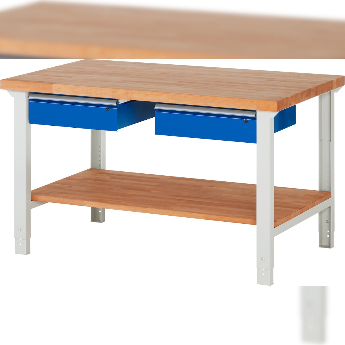 PROREGAL Werkbank Serie 7000 - Modell 7002 | HxBxT 79-114x150x90cm | 2x Schublade + Ablageboden | Schubladenmaße 2x150mm