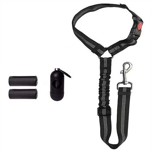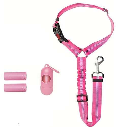 Guinzaglio per cani regolabile da agganciare alla cintura di sicurezza dell'auto: un guinzaglio retrattile che si fissa alla cintura di sicurezza dell'auto, completo di sacchetto per la raccolta delle