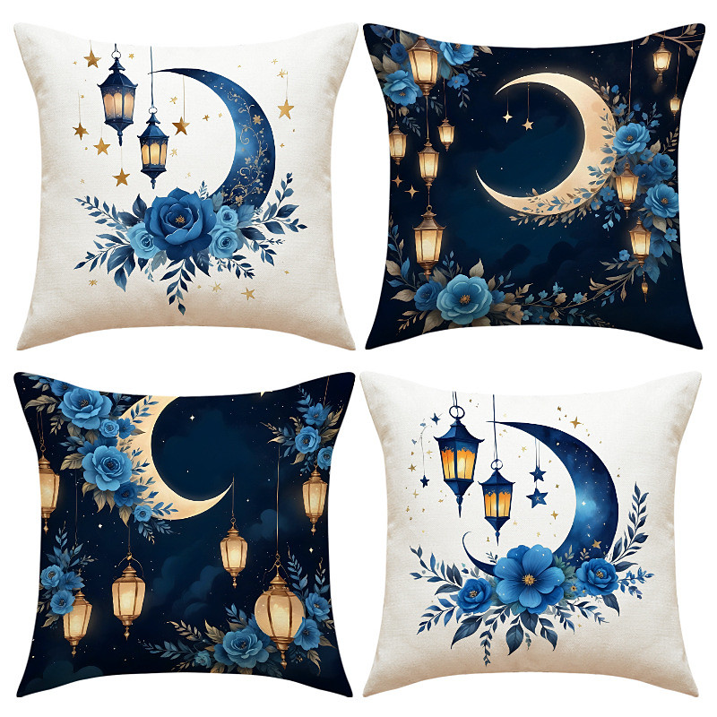 Ramadan Eid Throw Pillow Cover, Muslim Crescent Moon Print, Middle Eastern Decor, Linen Sofa Cushion, Durable Seat Pillow for Living Room and Prayer Room