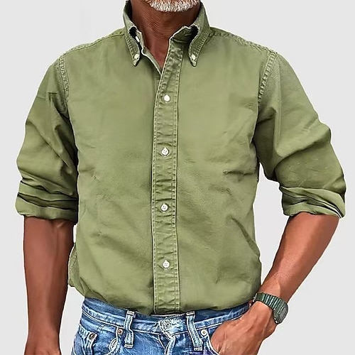 Men's Shirt Casual Shirt Button Up Shirt Acid Wash Shirt Blue Black White Yellow Pink Long Sleeve Plain Lapel Outdoor Casual Clothing Apparel Fashion Modern Smart Casual