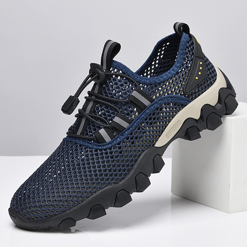 Men's Navy Blue Mesh Hiking Sneakers – Breathable Outdoor Running Shoes with Rugged Sole
