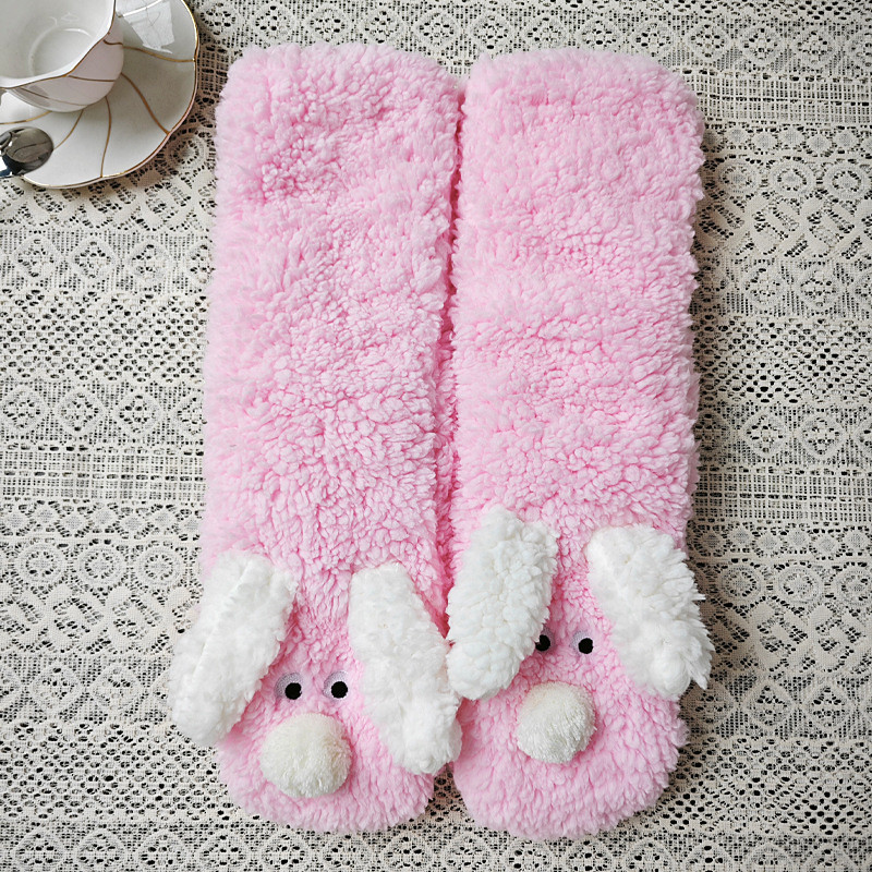 Christmas Women's Slipper Socks, Cartoon Coral Fleece Plush Crew Socks, Mid-Calf Fluffy Floor Socks, Christmas Holiday Cross-Border Edition