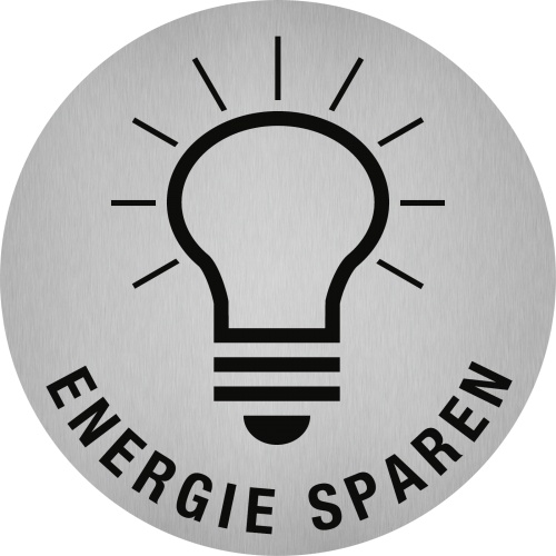 Aufkleber - Piktogramm Energie sparen, Edelstahl, selbstklebend, Ø 50 mm