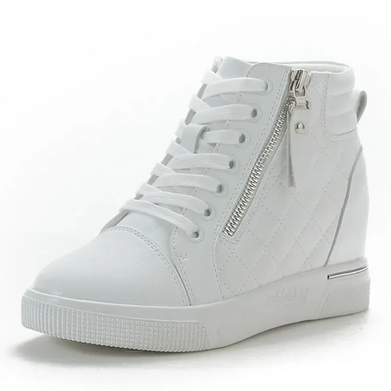 stivali bianchi con zeppa da donna - eleganti con dettagli allacciati, comodi e alla moda per gli outfit invernali
