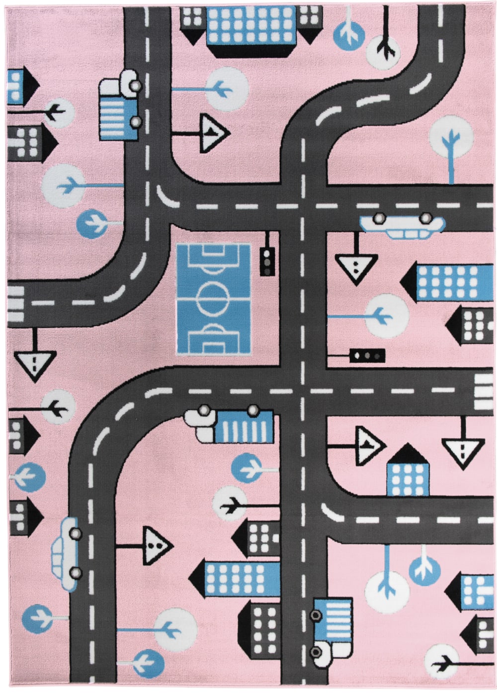 Tappeto per bambini rosa blu grigio gioco strada 180x250