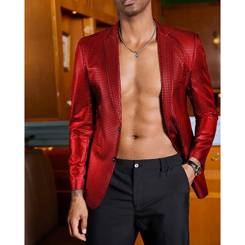Men's Blazer Performance Stage Wedding Party Vintage Fashion Spring Autumn / Fall Polyester Solid Color Pocket Buttons Comfortable Single Breasted Blazer Silver Black Red Blue