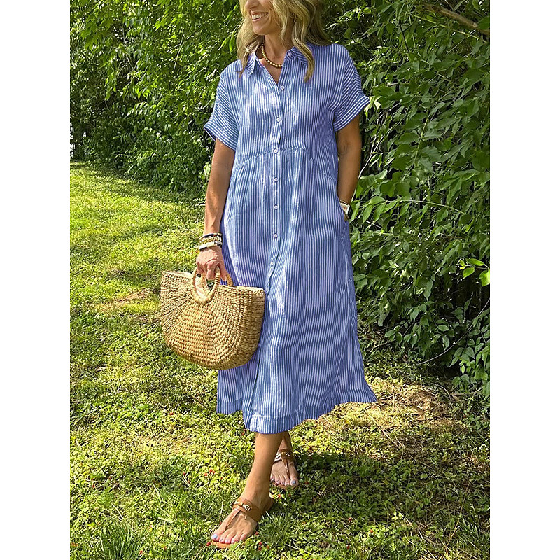Women's Long Dress Maxi Dress Cotton Linen Dresses Casual Dress Swing Dress A Line Dress Streetwear Maxi Vacation Street Holiday Loose Fit Short Sleeve V Neck Yellow Pink Dark Blue Light Blue Summer