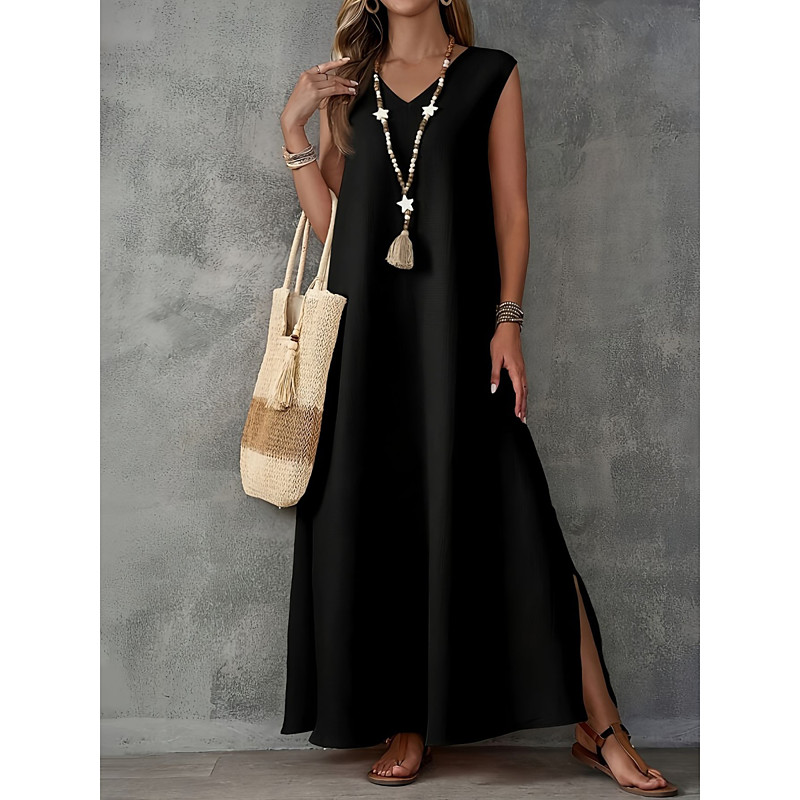 Women's Maxi Dress A Line Dress Summer Dress Casual Daily Regular Fit Plain Sleeveless V Neck Black White Light Purple Green Summer