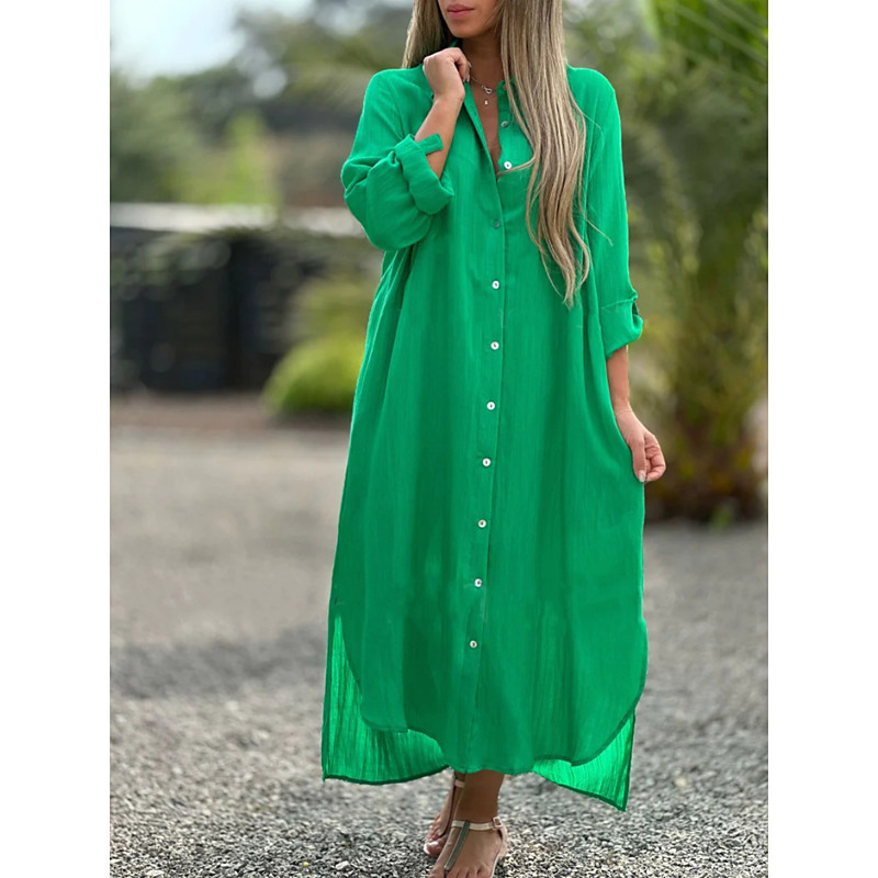 Women's Maxi Dress Shift Dress Casual Boho Daily Holiday Plain Long Sleeve Stand Collar Black Pink Light Brown Sky Blue