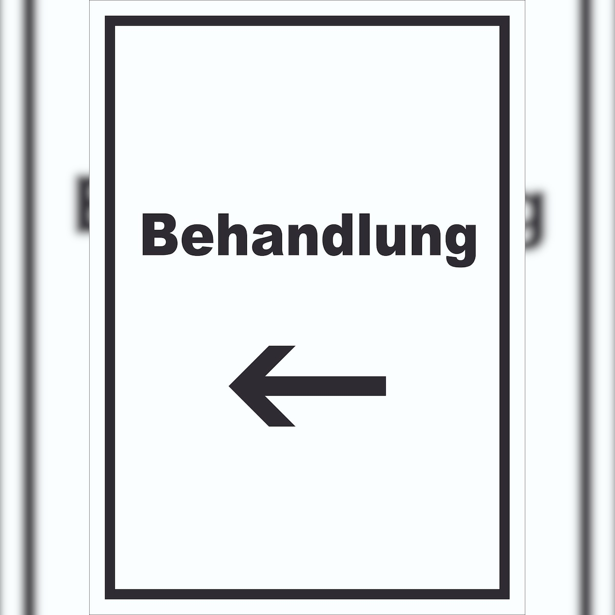 HB-Druck Behandlung Schild mit Text und Richtungspfeil links Behandlungsraum hochkant A1 Rückseite selbstklebend