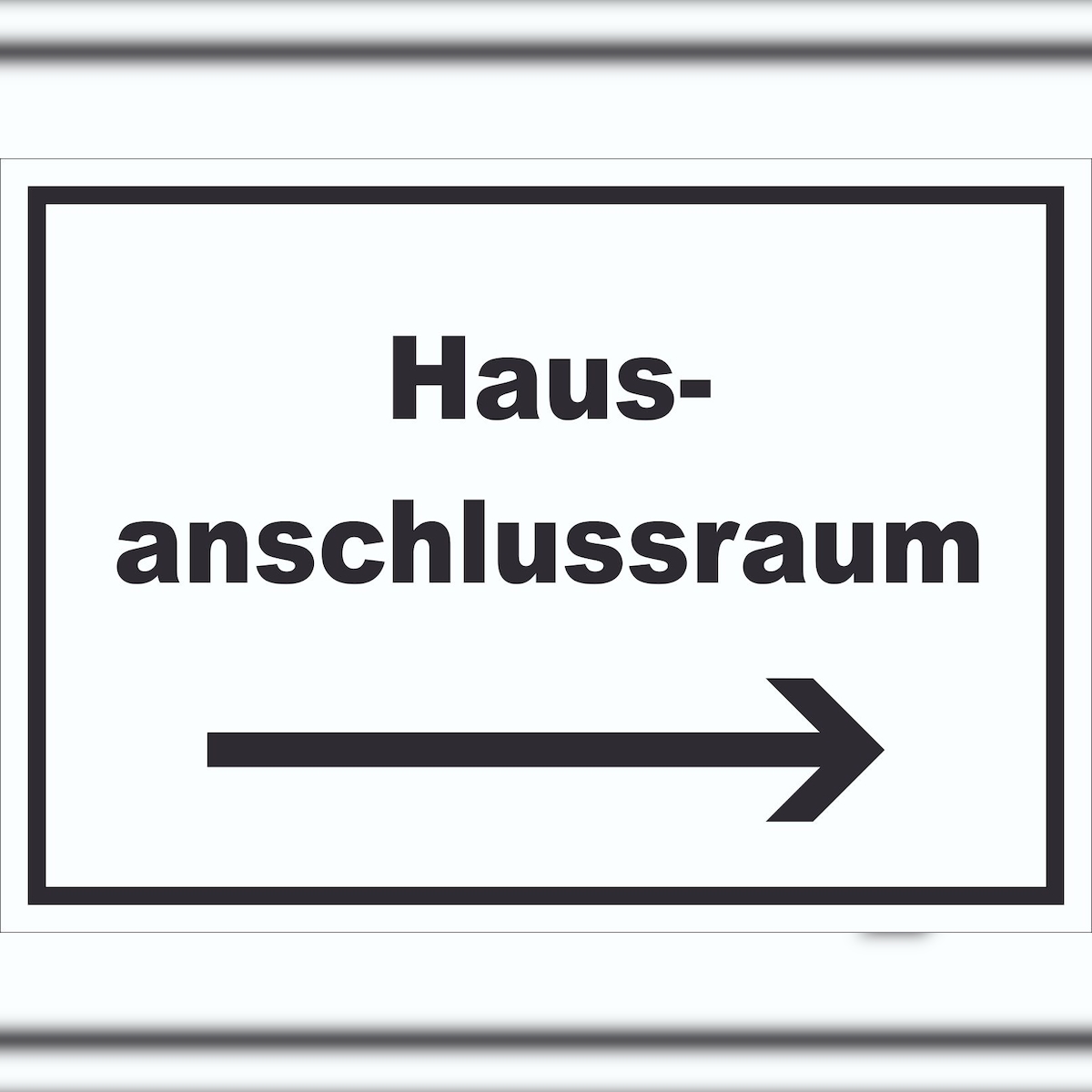 HB-Druck Hausanschlussraum Schild mit Text und Richtungspfeil rechts HAR hochkant A4 Rückseite selbstklebend