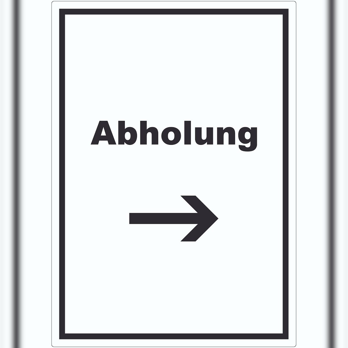 HB-Druck Abholung Aufkleber mit Text und Richtungspfeil rechts Post hochkant A6 (105x148mm)