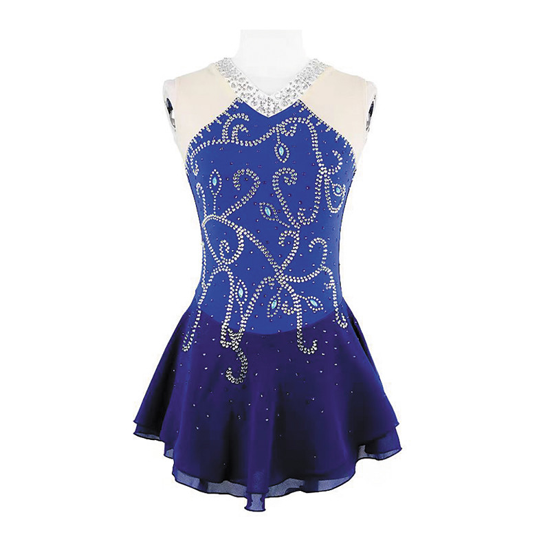 Figure Skating Dress Women's Girls' Ice Skating Dress Blue Patchwork Open Back Mesh Spandex Stretchy Training Practice Professional Skating Wear Thermal Warm Crystal / Rhinestone Sleeveless Ice