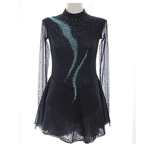 Eiskunstlaufkleid Damen Mädchen Eislaufen Kleid Schwarz Patchwork Daumenloch Netzstoff Spandex Dehnbar Training Übung Professionell Eiskunstlaufkleidung Thermowarm Kristall / Strass Langarm Eislaufen