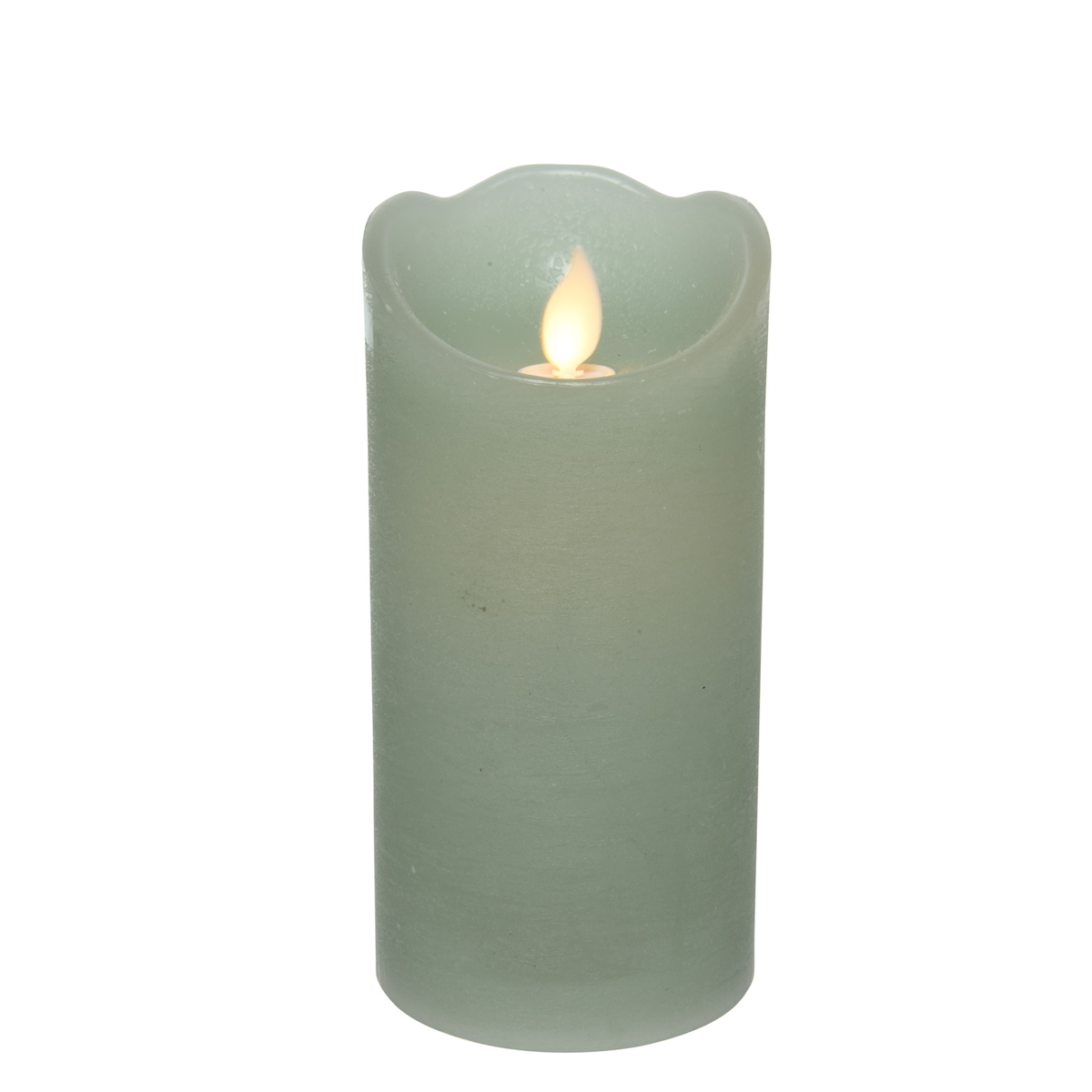 LED Kerze mit beweglicher Flamme Echtwachs Rustik-Optik H: 15cm Timer mintgrün