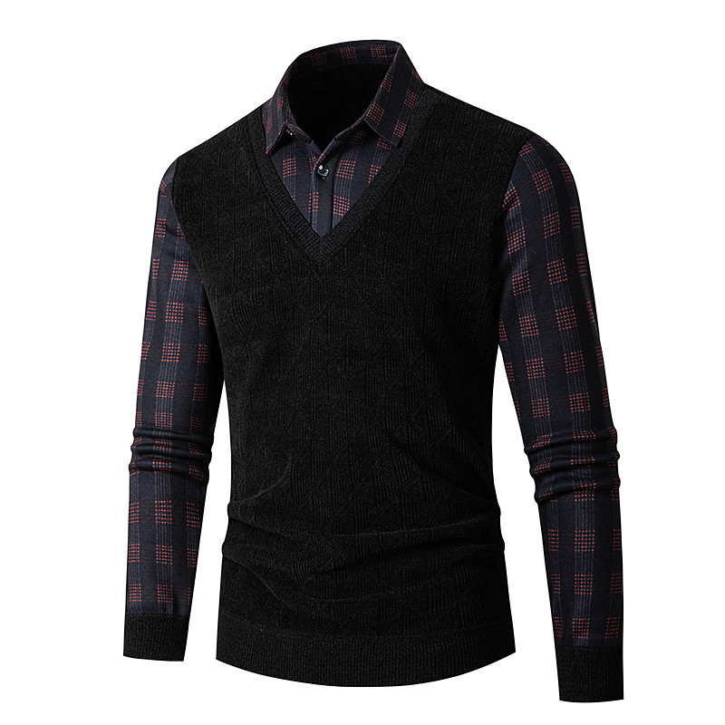 Men's Sweater Pullover Sweater Jumper Ribbed Knit Regular Tops Patchwork 2 in 1 Plain Crew Neck Knitwear Elegant Business Casual Clothing Apparel Fall Winter Black Dark Green M L XL
