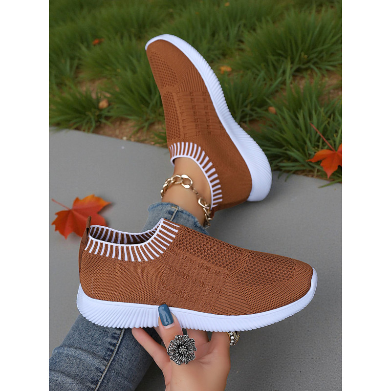 Women's Green Flyknit Slip-On Sneakers – Stretch Sock Fit, Breathable Lightweight Design, Perfect for Daily Walking, Travel, Christmas Street Style and Casual Winter Wear