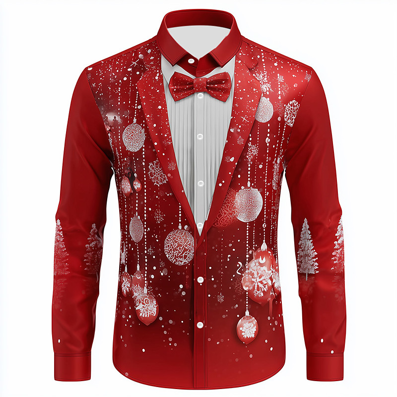 Christmas Men's Christmas Costume Suit Tie Printed Tuxedo Shirt Button Up Shirt Long Sleeve Funny Outdoor Holiday Spring Fall Turndown 3D Print Collared Shirts Red 1 Red