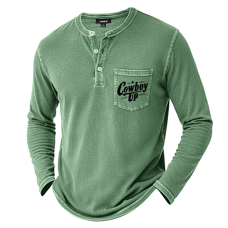 Men's Henley Shirt T shirt Tee Long Sleeve Vintage Letter Print Retro Vintage Casual Printed Pocket Graphic Henley Casual Spring Fall All Seasons Blue Purple Brown Henley T-Shirt