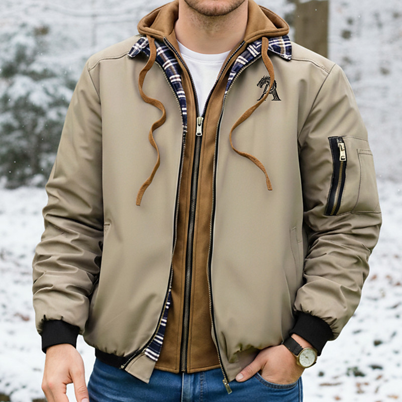 Men's Dragon Letter Printed Winter Coat Padded Hooded Jacket Thermal Warm Sporty Casual Outdoor Dailywear Zip Up Adjustable Drawstring Hood Plaid Lined Outerwear Fall Winter Long Sleeve Black Navy