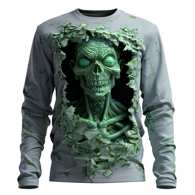 Halloween Men's Zombies 3D T Shirt Long Sleeve T shirt 3D Print Crew Neck Shirt Fashion Exaggerated Street Casual Daily Green 1# Green 2# Green 3# Summer Spring Fall Clothing Apparel S M L XL XXL XXXL