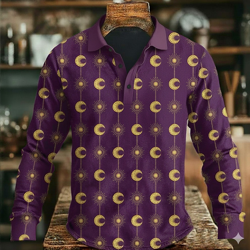Men's Graphic Polo Long Sleeve Polo Shirts Lapel Casual Outdoor Athleisure Daily Wear 3D Print Buttons Spring Fall Winter Blue Purple Brown