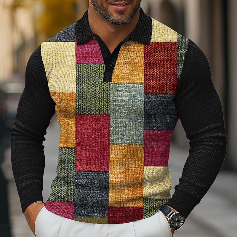 Men's Color Block Geometic Waffle Polo Shirts Long Sleeve Polo Shirts Collared Shirts Business Casual Business Wear to work Daily Wear 3D Print Buttons Spring Fall Winter Red 1 Red 4 Red 3