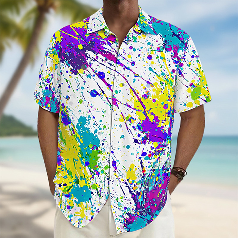 Men's Optical Illusion 3D Cartoon Mouth Shirt Summer Shirt Button Up Shirt Short Sleeve Funny Streetwear Holiday Summer Spring Turndown 3D Print Collared Shirts Front One Pocket Dark Red Red