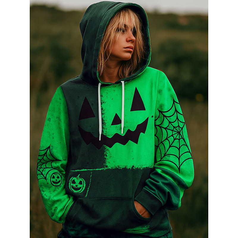 Halloween Women's Pullover Hoodie Sweatshirt Spider Web Graphic Fashion Casual Long Sleeve Hooded Regular Tops Street Dailywear Casual Drawstring Pocket Print Blue Purple Orange Green Fall Winter