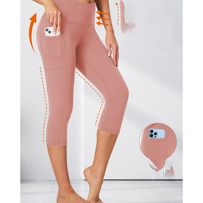 Women's Capri Pants Slacks Leggings Streetwear Casual Calf-Length Natural Plain Pocket Elastic Waist Comfy Outdoor Comfortable Outdoor Sports Outdoor Athleisure Dark-Gray Wine Navy Light Sky Blue