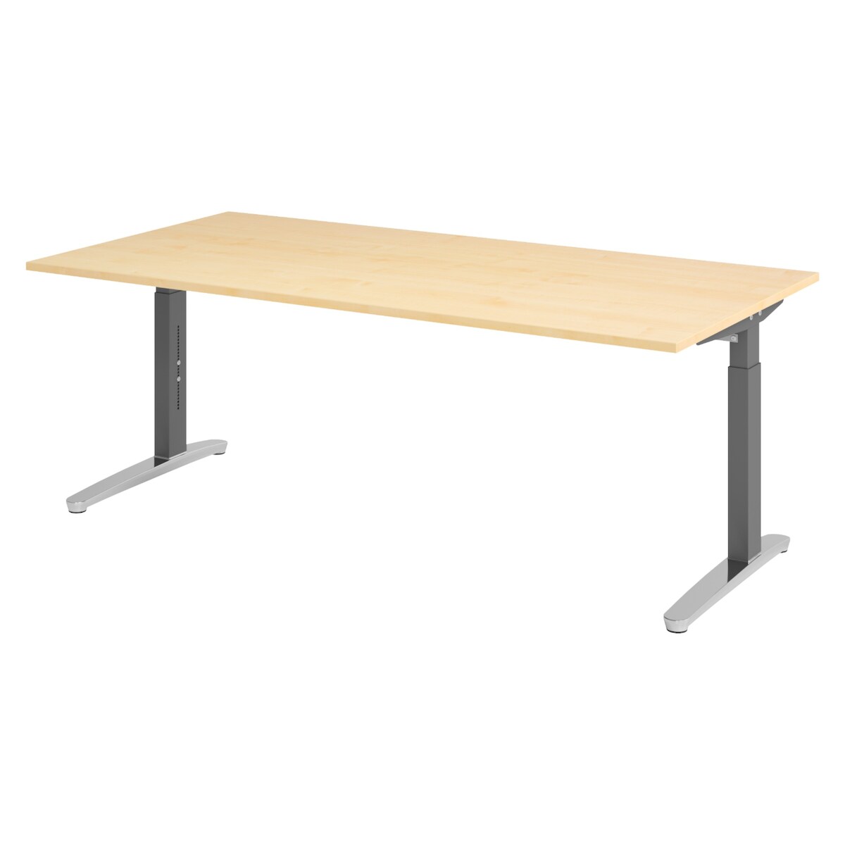 bümö manuell höhenverstellbarer Schreibtisch 200x100 in Ahorn, Gestell in graphit/alu - PC Tisch höhenverstellbar & groß, höhenverstellbarer Tisch