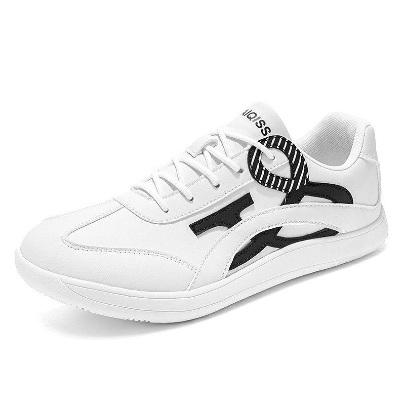 Men's White Fashion Sneakers with Contrast Black Detailing – Modern Casual Lace-Up Sport Shoes for Walking, Shopping and Everyday Wear